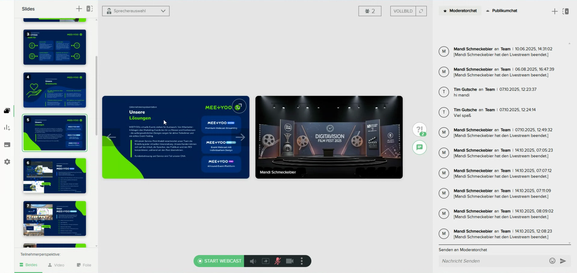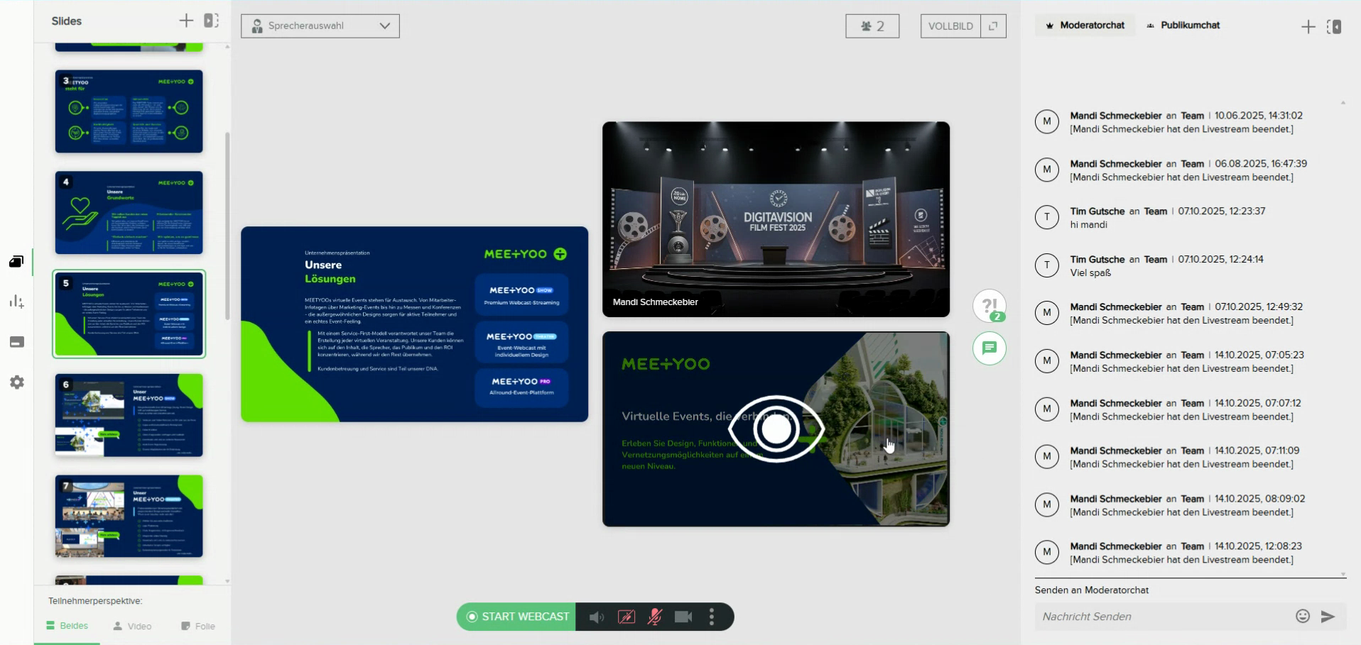 If you enable the "Both" view, your attendees can decide for themselves whether they want to see your camera or the presentation larger. This offers a high level of user-friendliness and engagement.